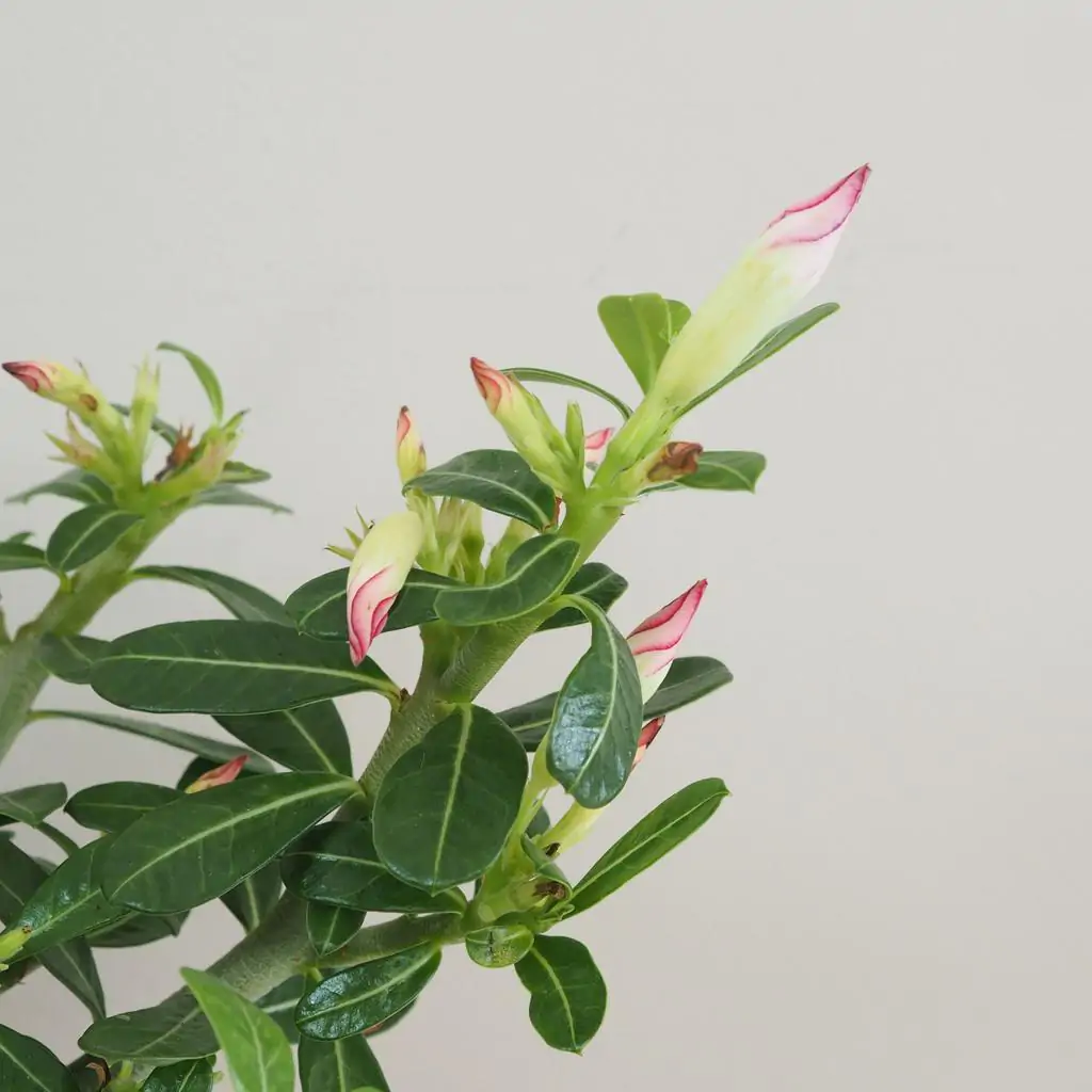 Adenium obesum je čarovná rastlina, ktorá vás zaujme svojim širokým kmeňom a drobnými listami – patrí medzi pachycauly. Vďaka tejto zhrubnutej časti v sebe dokáže zadržať množstvo vlahy a teda nie je nutné zalievať ho často. Ak teda nechcete aby vám rastlinka robila veľa starostí, Adenium je super voľbou. Táto verzia kvitne krásnymi zaujímavými kvetmi.