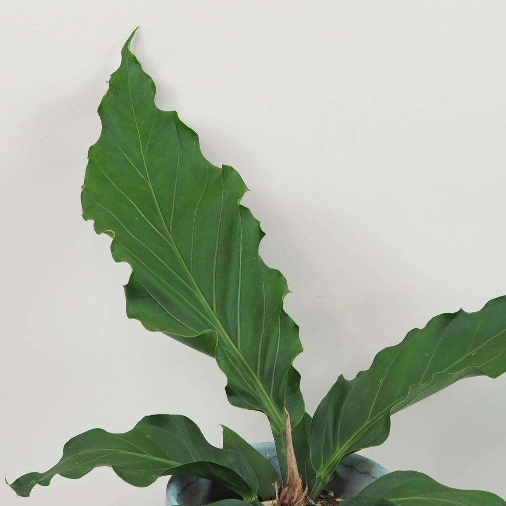 Anthurium crassinervium ‘Karma Birdnest’ s veľkými lesklými listami s jemne zvlneným okrajom patrí medzi nezvyklé izbové rastliny. Je príbuzné s klasickými farebnými antúriami, ktoré sa pestujú v našich končinách už dlhé roky a sú stále populárne. Tento druh však nezaujme kvetom, ale veľkými listami so zvlneným vzorom.