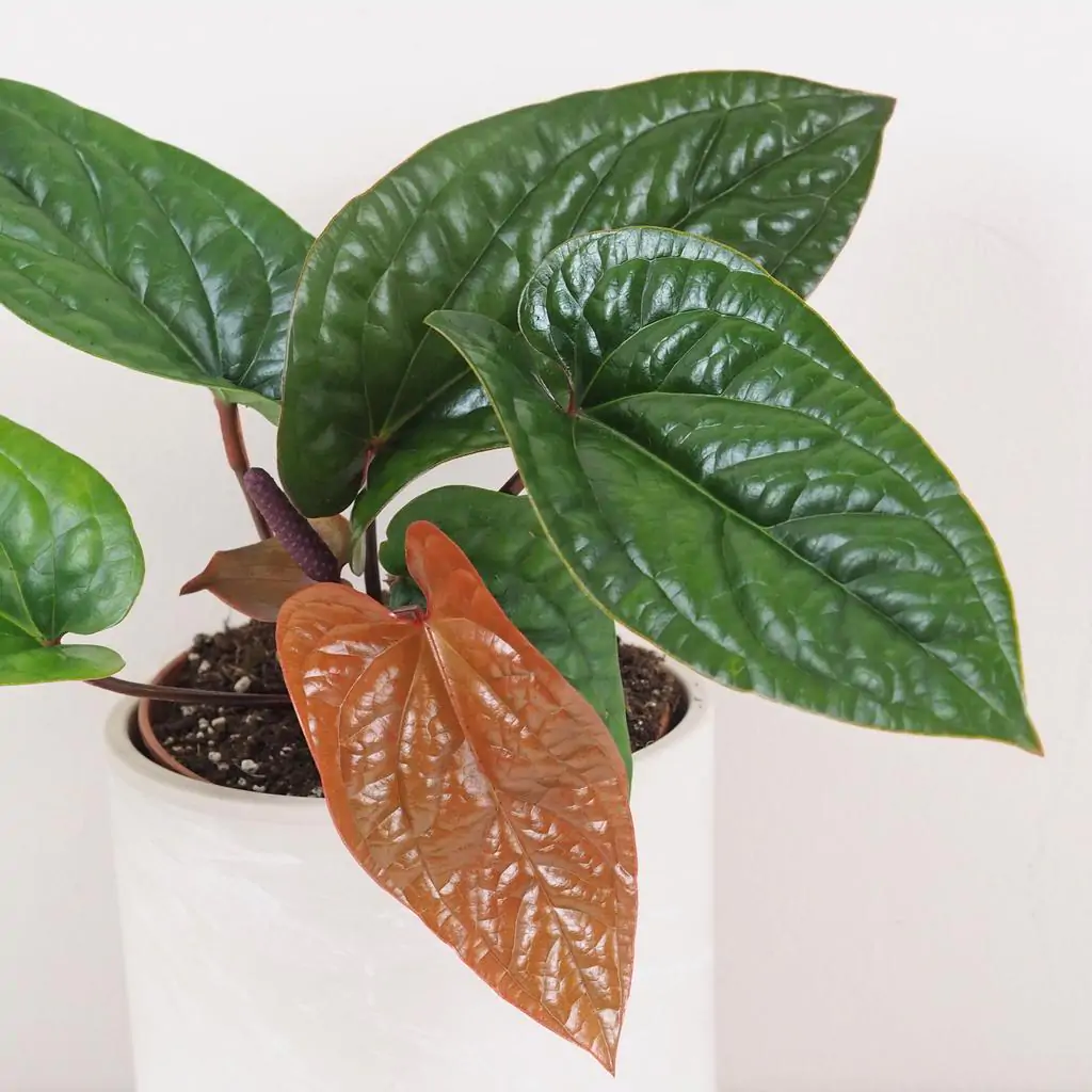 Anthurium radicans x luxurians patrí medzi vzácne zberateľské hybridy, ktoré vznikli krížením dvoch výnimočných botanických druhov pochádzajúcich z tropických oblastí Strednej a Južnej Ameriky. Tento hybrid je cenený najmä pre svoj unikátny vzhľad listov, ktorý sa časom výrazne mení. Nové listy vyrastajú v teplých oranžovo-medených tónoch a postupne dozrievajú do sýtozelenej farby. Ide o rastlinu, ktorá vynikne v každej zbierke a okamžite pritiahne pozornosť.