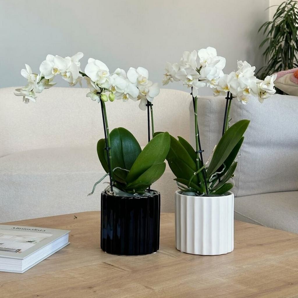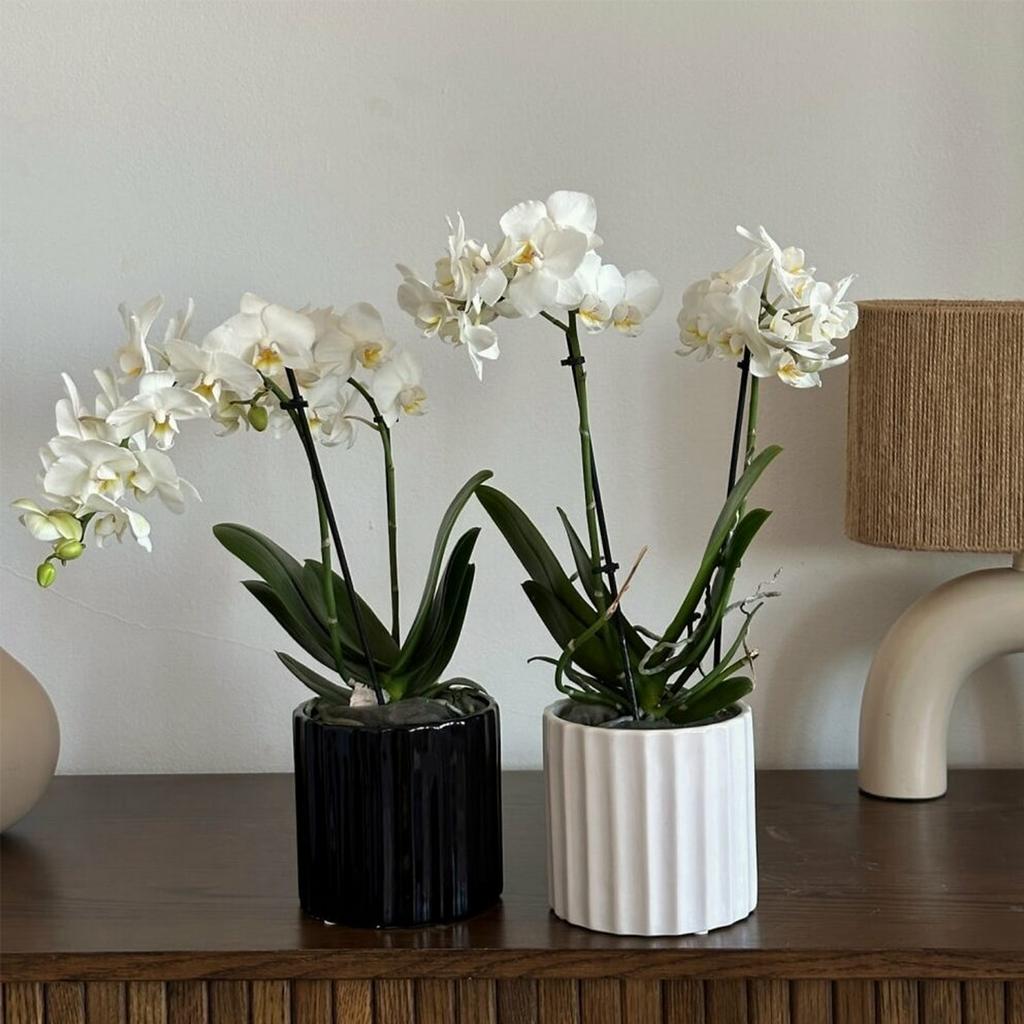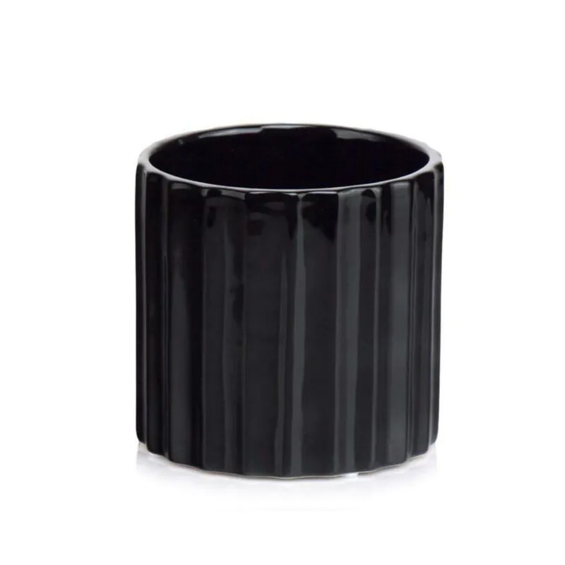 Jednoduchý čierny lesklý keramický kvetináč s jemným pásikovým vzorom. Svojim jednoduchým vzhľadom sa hodí do každého interiéru. Vďaka neutrálnemu dizajnu v ňom skvele vyniknú všetky zelené aj farebné izbové rastliny.