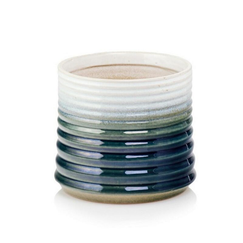 Elegantný črepník so modro-bielou glazúrou pripomínajúcou vlny v oceáne. Tento dekoračný kvetináč a zútulní váš interiér. Hodí sa najmä k modrým doplnkom. Pekne v ňom vyniknú zelené izbové rastliny, ale môžete ho doplniť aj farebnejšími druhmi a vytvoriť tak neprehliadnuteľný doplnok.