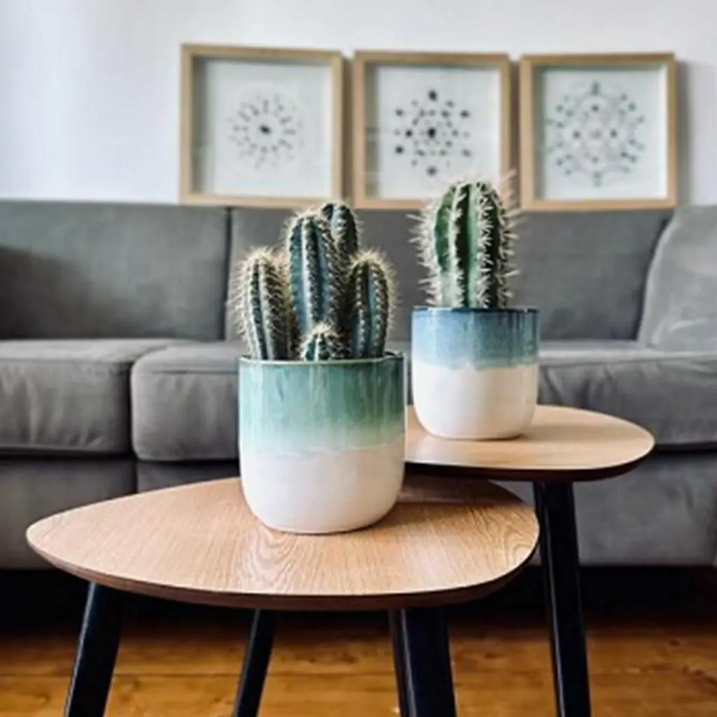 Elegantný keramický kvetináč so zelenou-modrou glazúrou pripomínajúcou vlny v oceáne a piesočné pobrežie. Tento dekoračný črepník skvelo doplní a zútulní váš interiér. Hodí sa najmä na zelené izbové rastliny, ale môžete ho doplniť aj farebnejšími druhmi a vytvoriť tak neprehliadnuteľný doplnok.