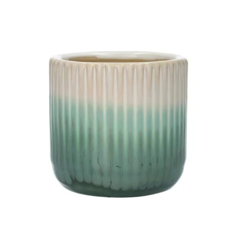 Očarujúci dekoračný kvetináč Turquoise Bay so zaujímavou stekajúcou glazúrou, ktorá hrá odtieňmi bielej a tyrkysovej farby. Jeho vzor pripomína priezračné more s pieskovou plážou. Vďaka glazúre je každý kus originál. Jednoznačne vynikne medzi klasickým dekoračnými obalmi na kvetináč. Výborne sa hodí na rôzne zelené aj farebné izbové rastliny. Bude krásnou netradičnou dekoráciou na stôl, poličku či okenný parapet.