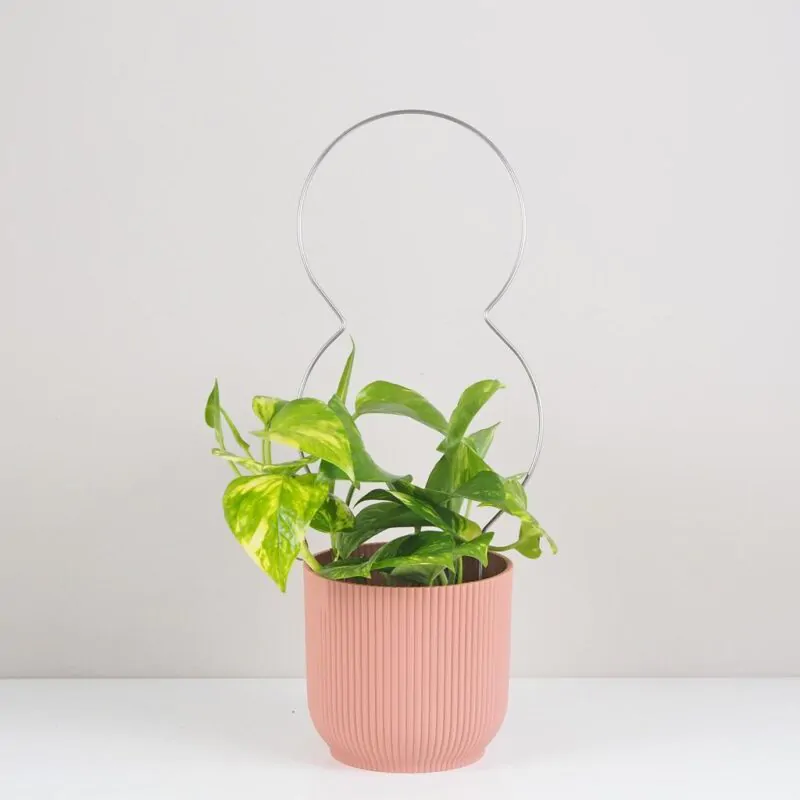 Tvar osmičky je nielen oku lahodiaci, ale aj praktický – výhony rastliny sa môžu jednoducho obtočiť okolo kruhov alebo sa o ne oprieť. Výška opory je 40 cm, takže sa hodí do väčšiny kvetináčov pre bežné izbové rastliny. Je ideálna pre druhy ako Monstera adansonii, Philodendrony, Pothosy, Syngoniá, ale aj pre mierne padajúce Zamioculcasy či Aglaonemy, ktoré potrebujú len jemné podopretie.