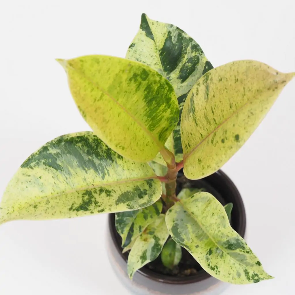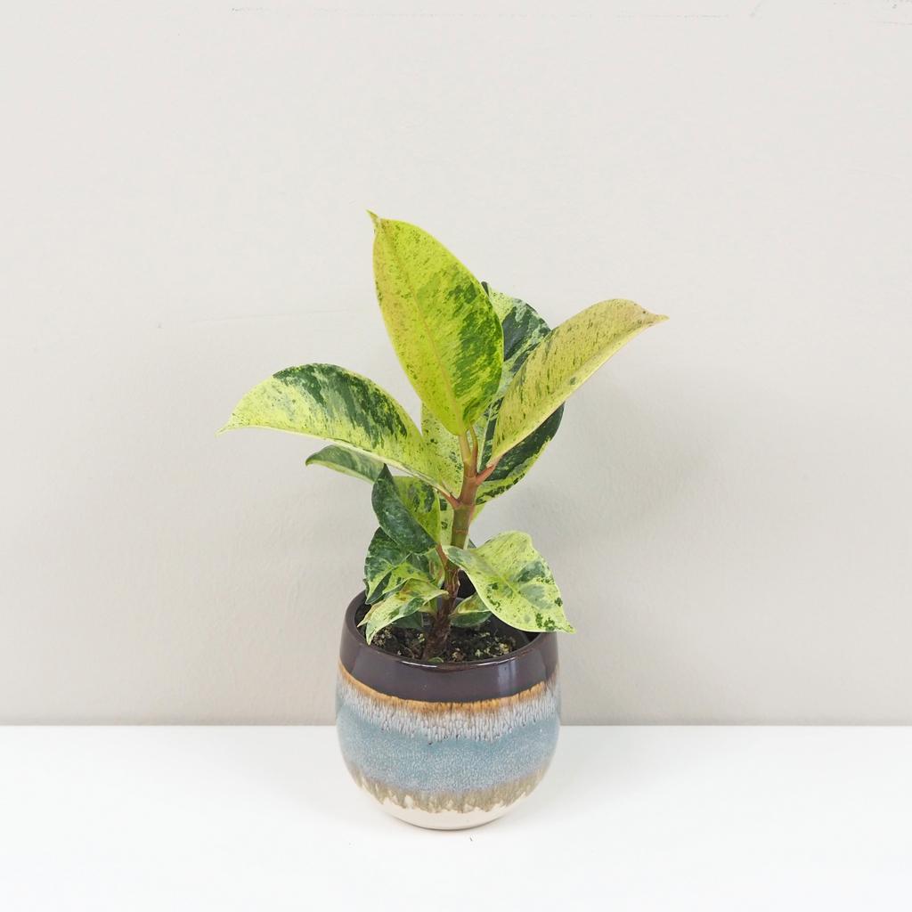 Ficus elastica ‘Shivereana’ sa radí medzi najvzácnejšie kultivary fikusov. Má jedinečné panašované listy, ktoré vyzerajú ako namaľované. Každý list má na sebe iný vzor. Pri nových listoch sa môžete vždy tešiť, aké malé umelecké dielo sa vám na rastlinke otvorí. Jeho výnimočný vzhľad oživí zbierku každého milovníka rastlín.