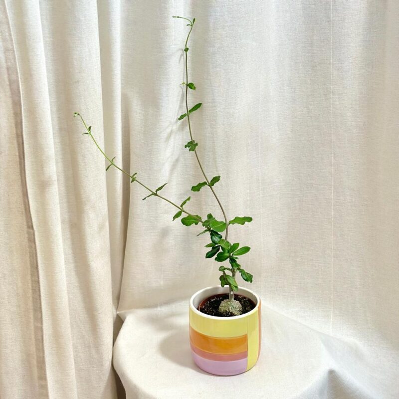 Fockea edulis je fascinujúca sukulentná rastlina pôvodom z Južnej Afriky, ktorá si získava priazeň zberateľov vďaka svojmu zvláštne tvarovanému hľuzovitému kaudexu. Táto rastlina vytvára dlhé popínavé výhonky a je výbornou voľbou pre každého, kto má rád netradičné tvary a nenáročnú starostlivosť. V prírode je známa aj ako jedlá fockea, pretože jej kaudex bol tradične využívaný domorodcami ako núdzová potrava. V interiéri je to však skôr dizajnový skvost, ktorý zaujme na prvý pohľad.