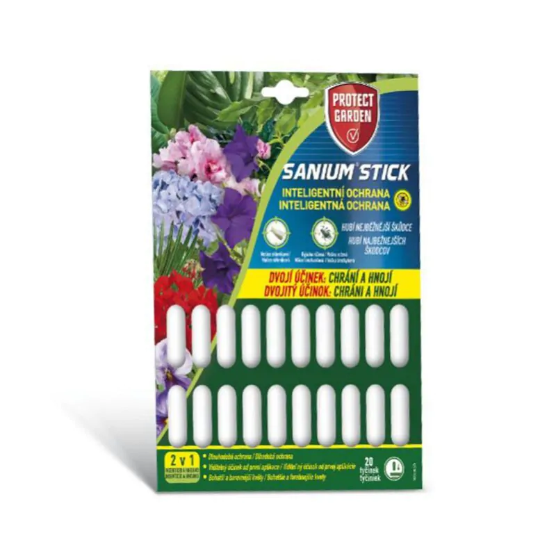 Sanium Stick je určený na ochranu izbových okrasných rastlín pestovaných v kvetináčoch v bytoch a zimných záhradách proti cicavým škodcom – vošky a molice.