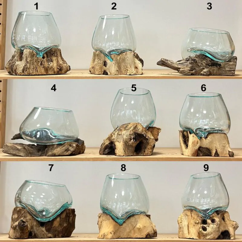 Akvárium na dreve je výnimočný dizajnový doplnok do domácnosti. Je ručne vyrobené priamo na exotickom ostrove Bali. Každý kus má jedinečný drevený podstavec z dreva Gamal. Akvárium je fúkané z recyklovaného skla. Ešte za horúca sa priloží na drevo a tak sa vytvaruje jeho špecifický tvar, ktorý zaručí, že na dreve drží aj bez toho, aby muselo byť prilepené.