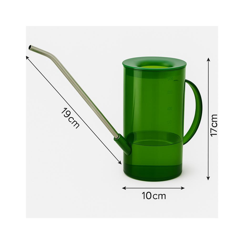 Štýlová krhlička v elegantnej zelenej farbe kombinuje odolný priehľadný plast a nerezovú oceľ, vďaka čomu pôsobí moderne a zároveň je veľmi praktická. Dlhé a úzke nerezové hrdlo umožňuje presné zalievanie bez rozliatia, čo oceníte najmä pri menších kvetináčoch a hustých rastlinách, kde sa bežné krhličky ťažšie používajú.