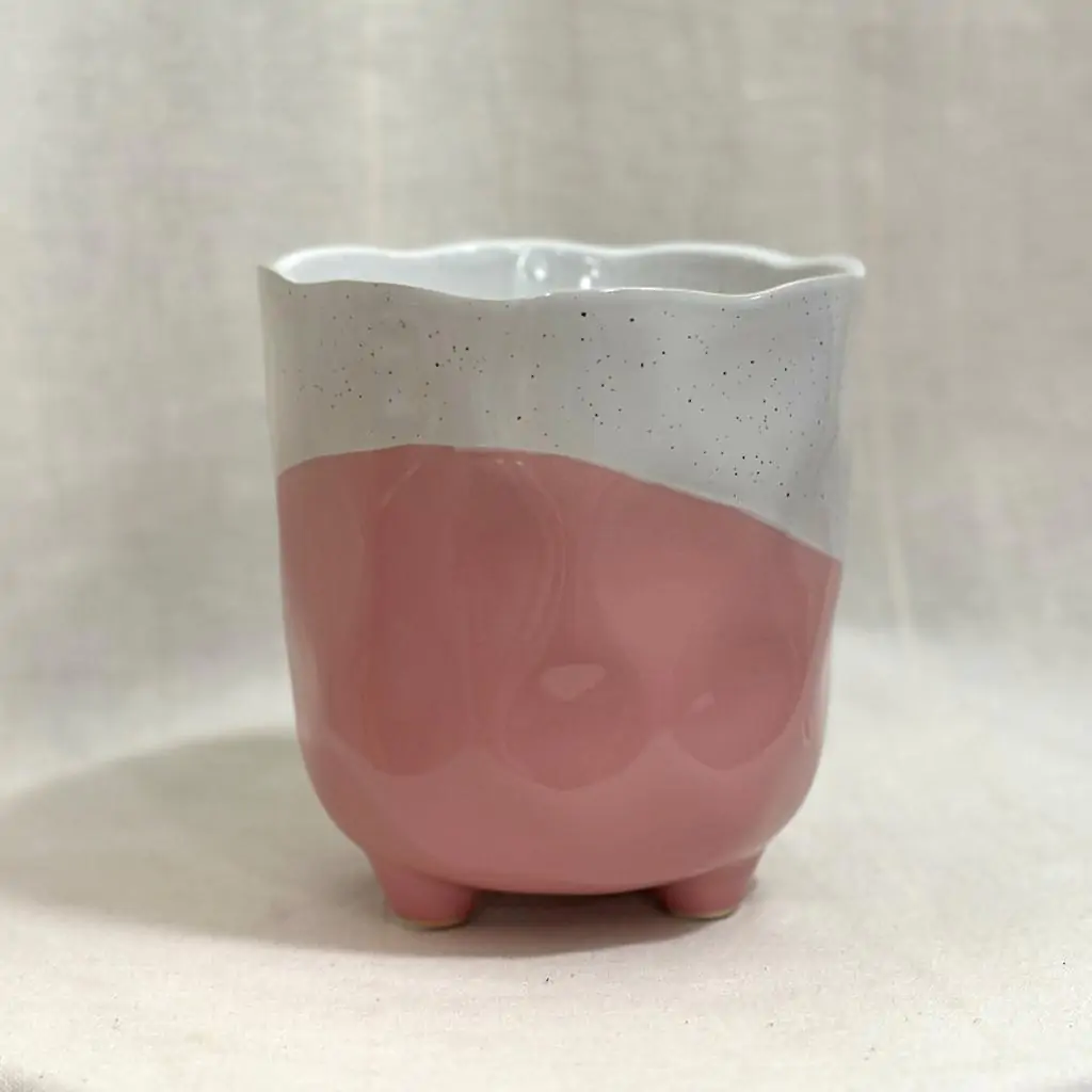 Originálny keramický kvetináč na nožičkách s hravým farebným vzorom, ktorý vnesie do vašej domácnosti radosť a príjemnú atmosféru.