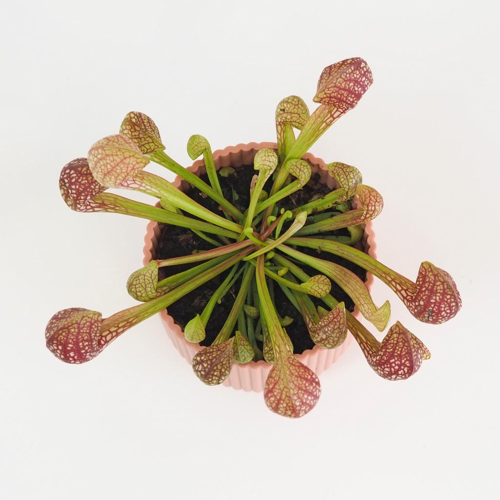 Sarracenia scarlet belle patrí medzi najzaujímavejšie spomedzi mäsožraviek. Má veľké kalichy, ktorými chytá muchy – preto sa jej hovorí aj mäsožravá rastlina.
