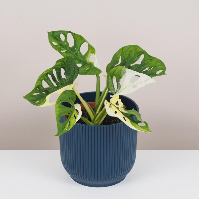 Monstera adansonii variegata zaujme nádhernými bielo zelenými panašovanými listami. Jedná sa o mimoriadne raritný zberateľský kúsok. Tento druh rastie ťahavo a skvelo sa hodí na všetky poličky či skrinky.