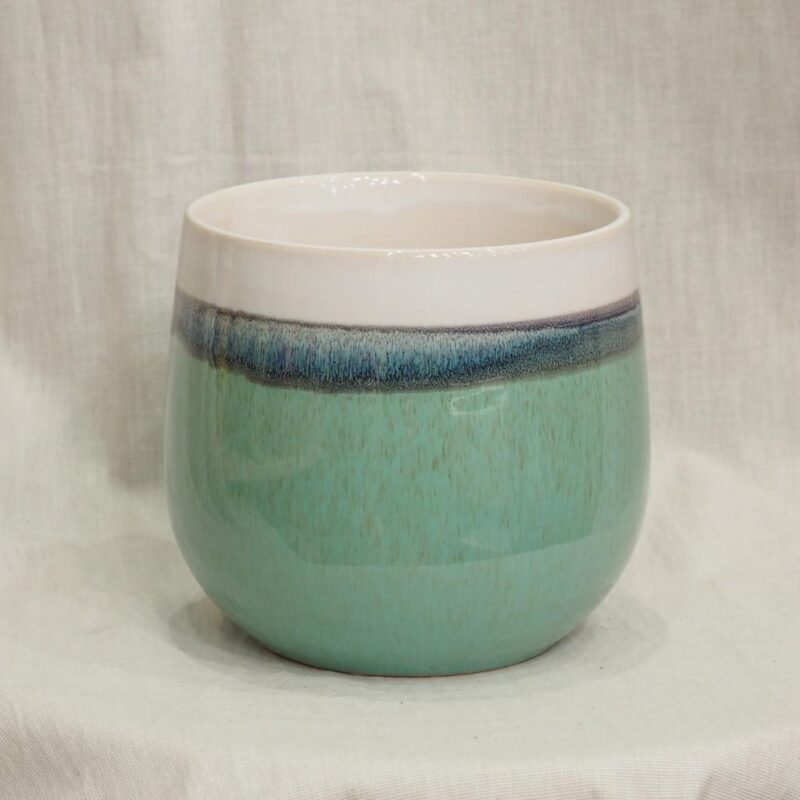 Pôvabný oblý dekoračný črepník Bondi hrá odtieňmi tyrkysovej farby. Jeho vzor pripomína pokojné more. Vďaka stekajúcej glazúre je každý kus originál. Jednoznačne vynikne medzi klasickým dekoračnými obalmi na kvetináč. Výborne sa hodí na rôzne zelené aj farebné izbové rastliny. Bude krásnou netradičnou dekoráciou na stôl, poličku či okenný parapet.