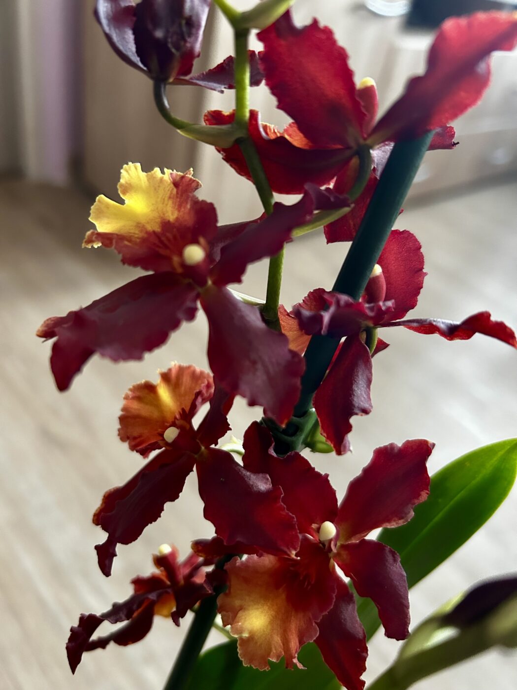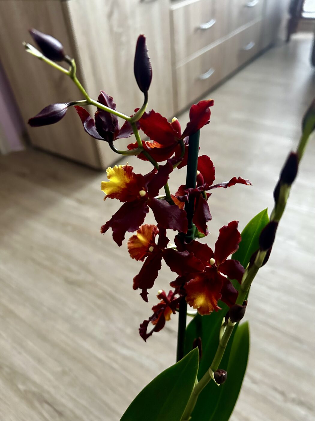 Táto orchidea preferuje jasné, rozptýlené svetlo a mierne zalievanie – substrát by mal medzi zálievkami čiastočne preschnúť. Počas rastového obdobia ocení pravidelné prihnojovanie hnojivom na orchidey. Pri správnej starostlivosti vás odmení bohatým kvitnutím, ktoré rozžiari váš interiér na niekoľko týždňov.