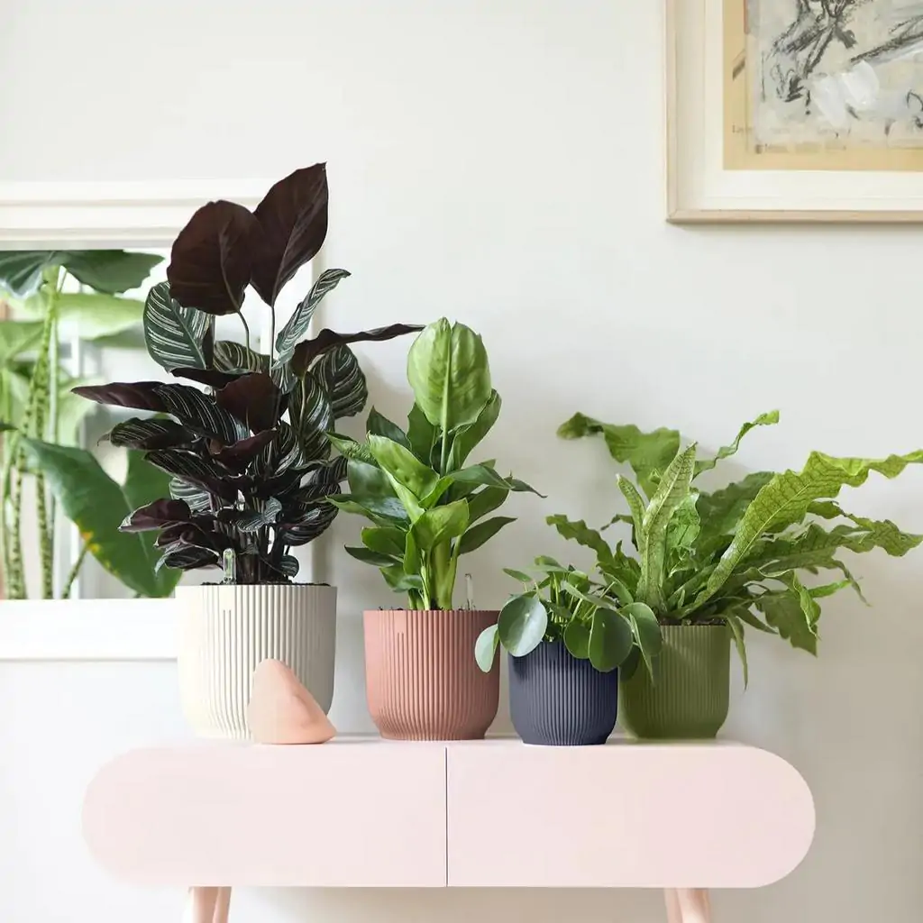 Kombinácia rôznych veľkostí a farieb plastových kvetináčov s prúžkami je dokonalým spôsobom, ako vytvoriť zaujímavú zelenú oázu.