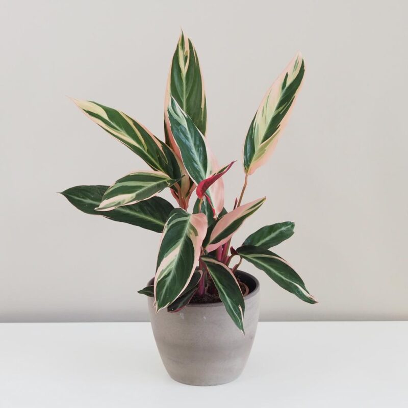 Stromanthe sanguinea ‘Triostar’ má impozantné listy s výnimočným spojením odtieňov zelenej, bielej a ružovej farby. Jej listy vyzerajú akoby vyšli z ateliéru talentovaného maliara. Skvelo rozžiari každý interiér.