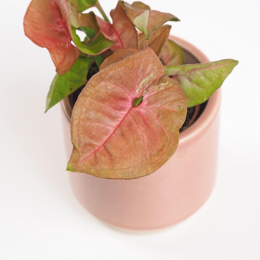 Druh Syngonium ‘New Dew’ patrí medzi zaujímavejšie farebné kultivary. Je to úplné nový kultivar, ktorý sa vyznačuje sa nezvyčajnými sýtoružovými listami.