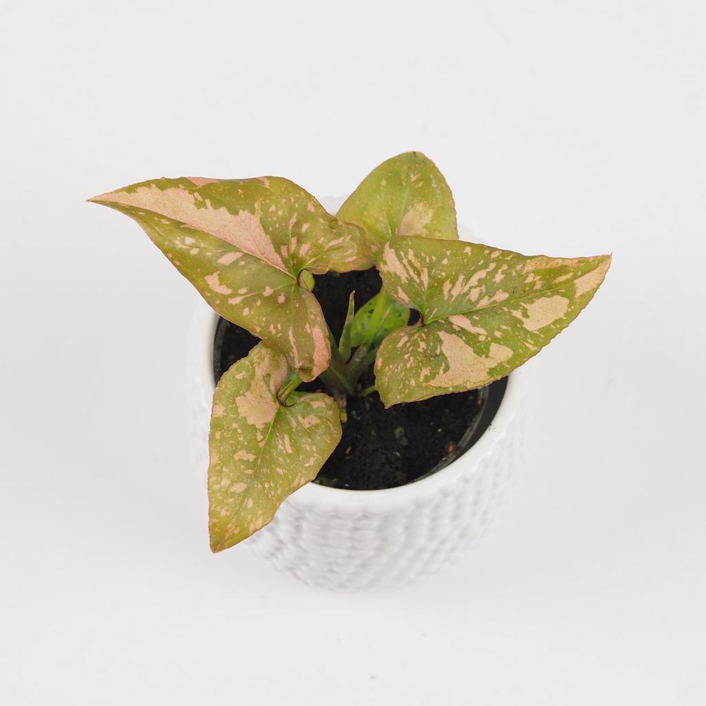 | Iné názvy: | Arrowhead plant, Arrowhead vine, Goosefoot, Nephthytis, African evergreen, American evergreen, Syngonium Pink Splash |