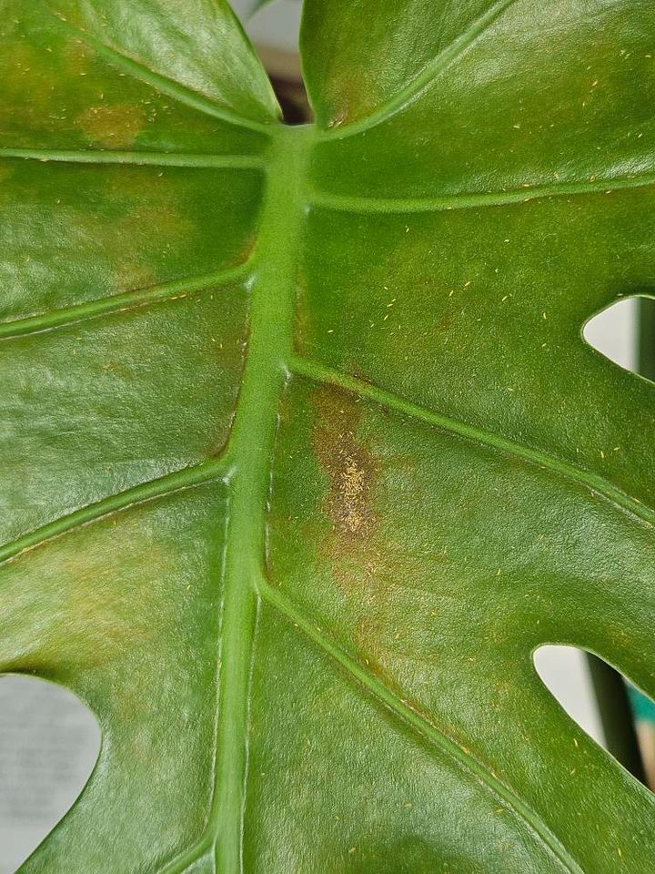Môžeme tiež spozorovať väčšie čierne bodky na listoch, ktoré sú výkaly týchto škodcov. Takto sa napadnutie často prejavuje napríklad na monstere adansonii či na marantách.